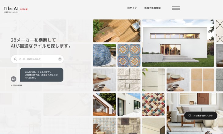 タイルライフ㈱様主催の「Tile-AI建材コンシェルジュ」に弊社も協賛し、商品を掲載いただいております。